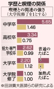 そもそも低学歴ほど喫煙率が高いことに加えて、喫煙すると、